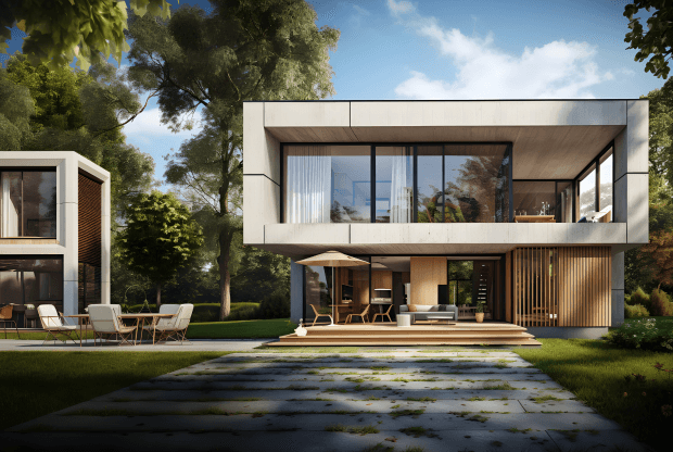 Několika menších pavilonů integrovaných do okolní zeleně.